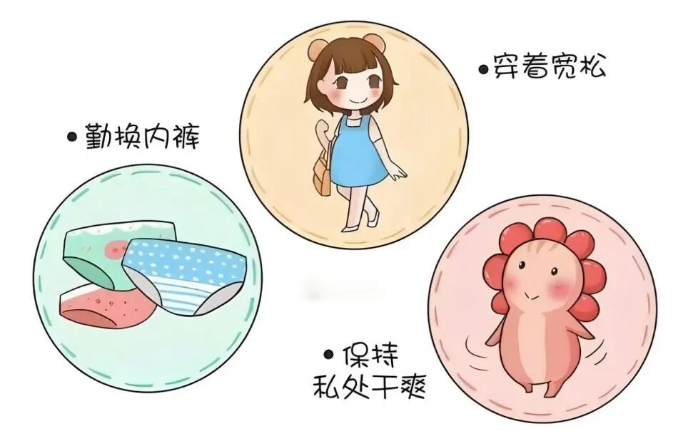4.穿透气性好的内裤: 内裤需勤换勤洗,选择棉质、透气材质,避免长时间使用卫生护垫。