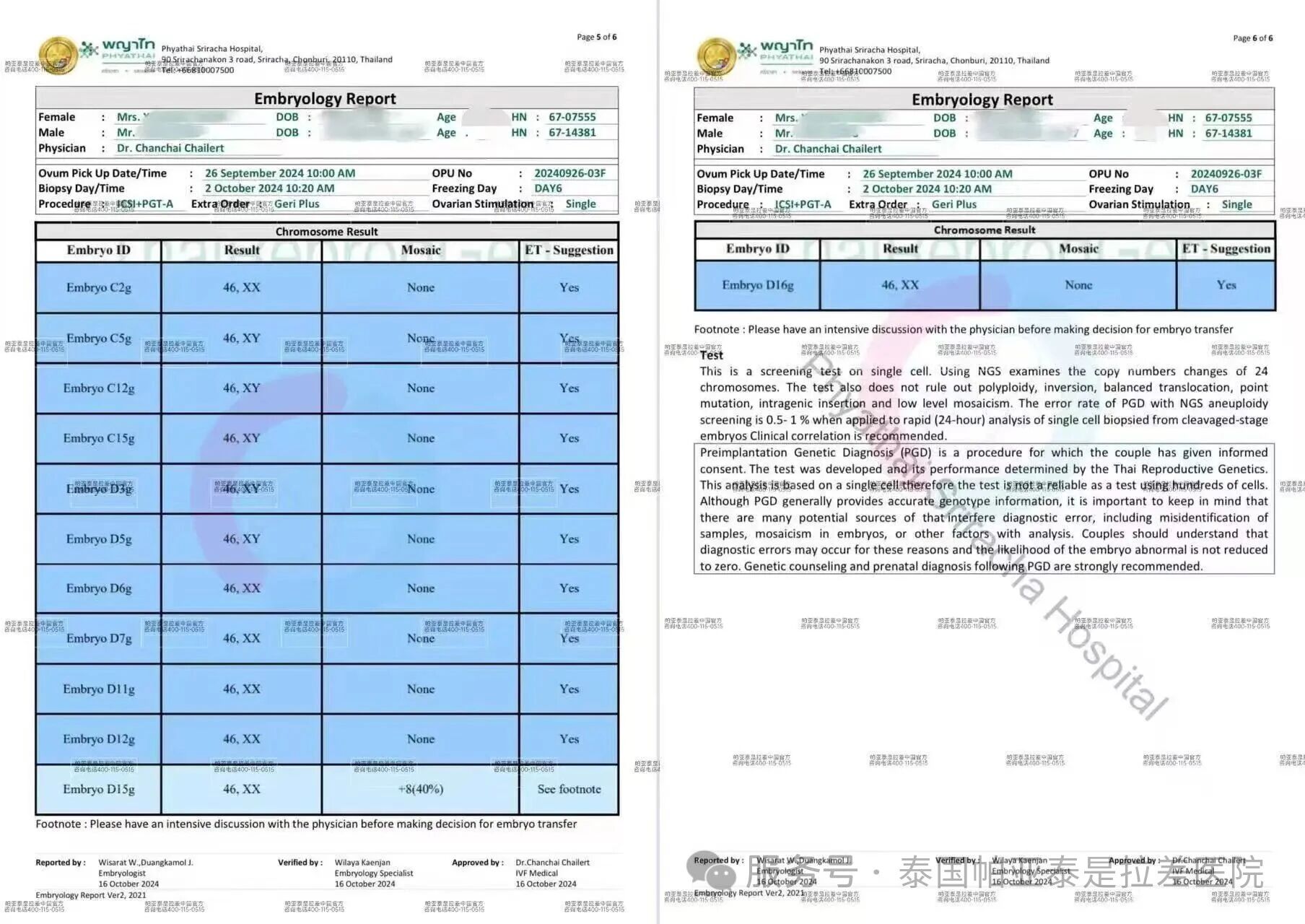 取卵20颗,成功12颗囊胚,并且染色体通过率也很高!