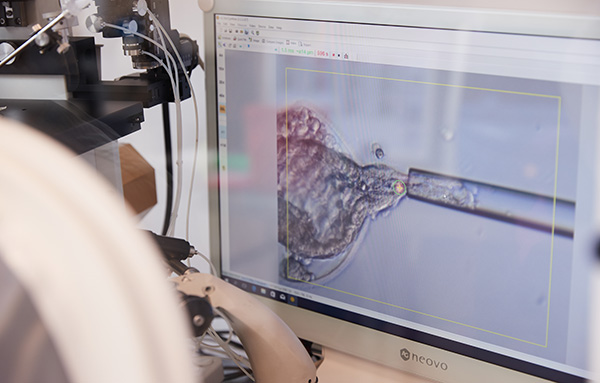 Piezo平头针ICSI技术进行胞浆内单精子注射,16000倍放大显微镜下挑选精子,保证卵子不受损伤,提高受精成功率。