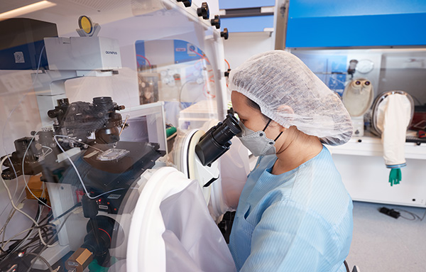 在胚胎培养实验室中,严格控制温度、湿度、空气粉尘密度和挥发性化学物质含量,处理卵子和精子,进行受精操作。